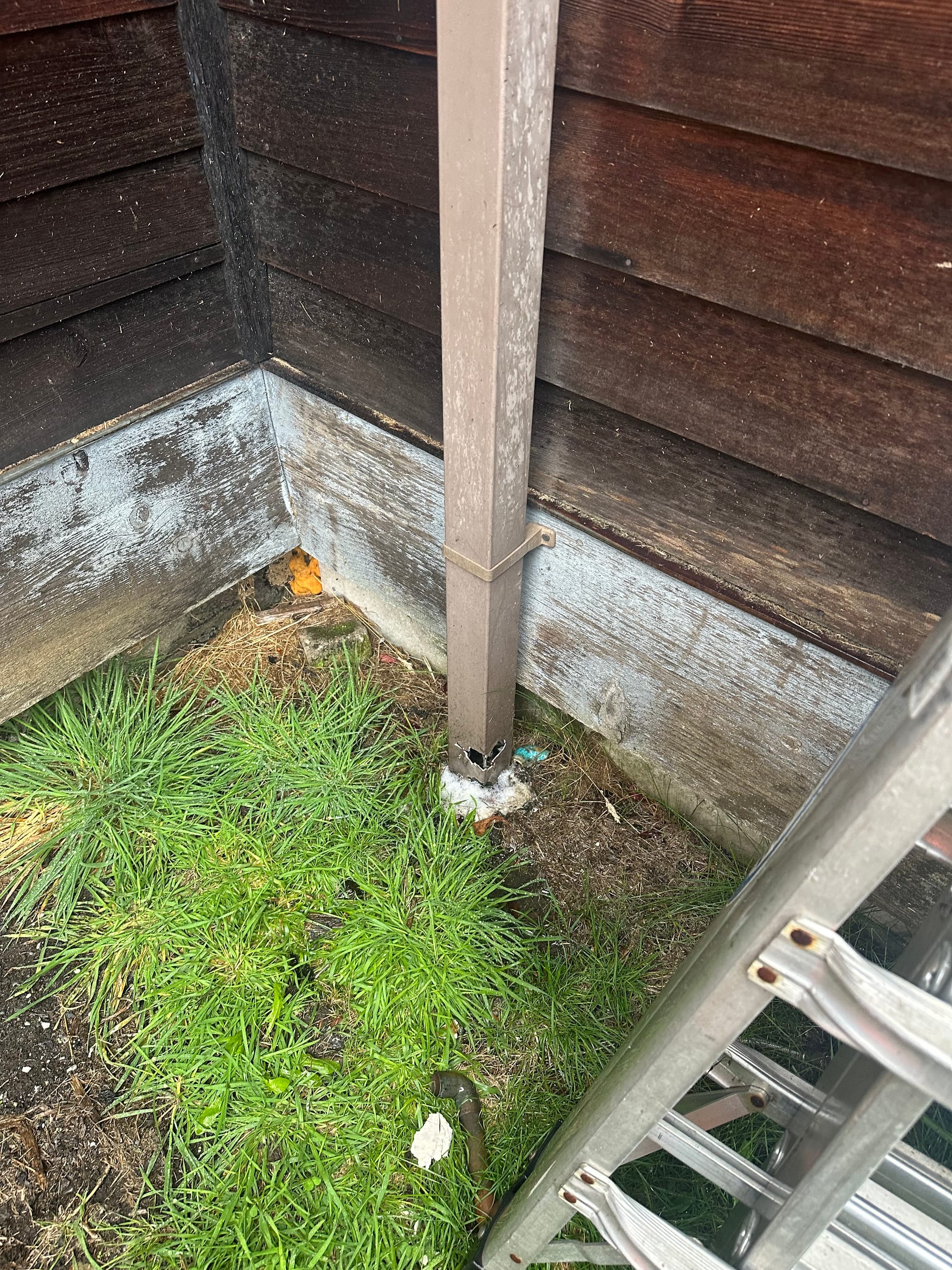 Take, for example, this downspout, that was literally depositing water from the roof right into the crawlspace. Was it once connected to a subterranean downspout that drew water further from the house? It's a mystery, now that the downspout is cracked and there's no place for the water to go but back into the house. My solution for the moment is shortening the drain, attaching an elbow, and guiding the water away from the house. Rain barrels will be the next step in the evolution. Curtain drains at higher elevations on the property will be the one after that, when I can hire an excavator.