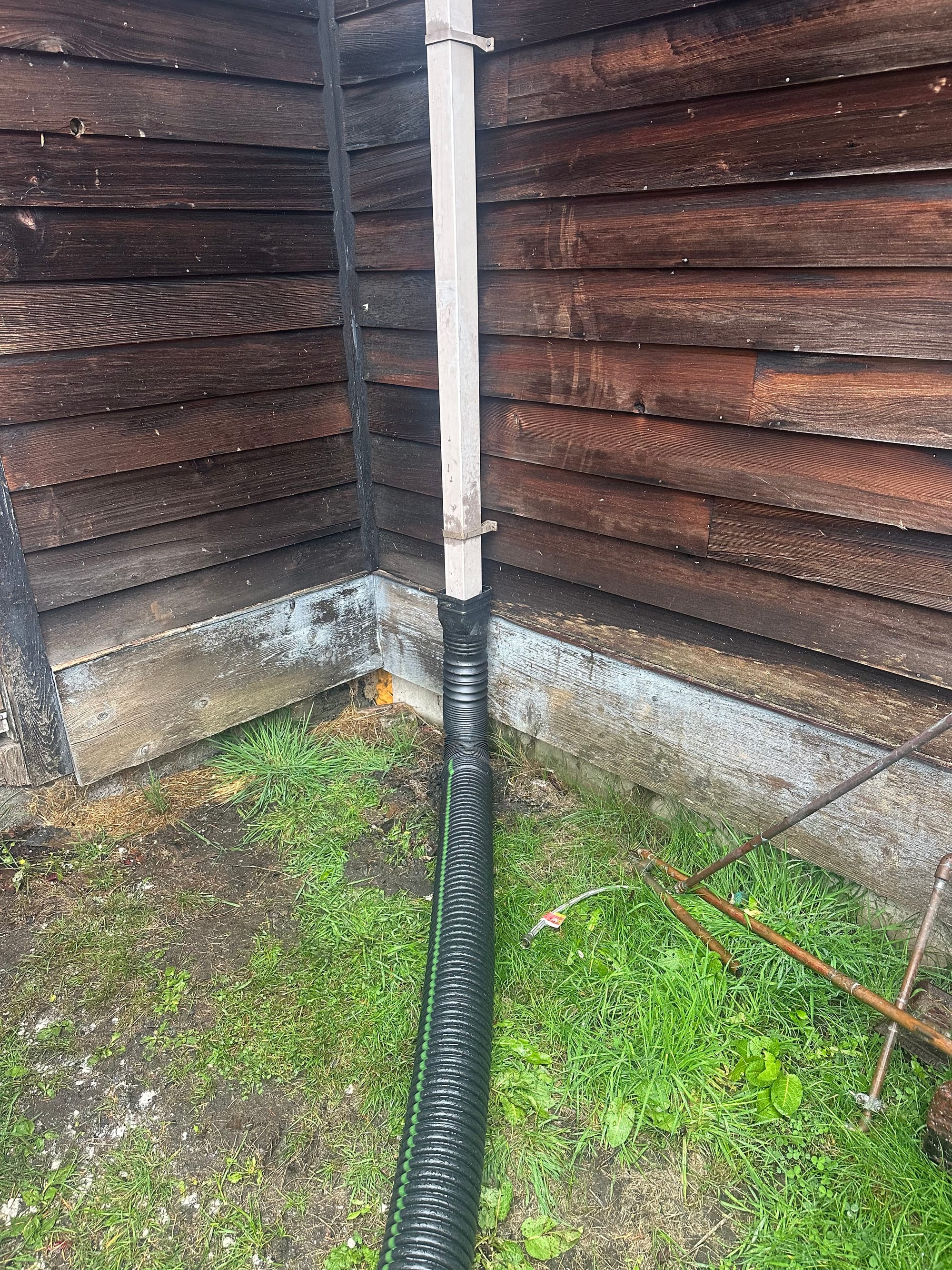 If it hasn't already been made clear, water plays a lead character in the story of this property, flowing freely everywhere but through my faucets. When it rains, a massive moving wall of groundwater starts cascading down from the southwest, saturating the ground, creating temporary wetlands, and cementing heavy trucks in their tracks. It’s clear that this has been an ongoing problem since the property was homesteaded, and even someone who still knows so little about construction and land management (me) can make out a timeline of past attempts at water mitigation, and the traces of a thought process. Sometimes.